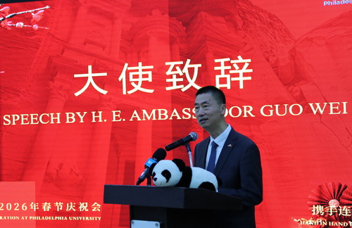 郭大使出席费城大学师生组织的“欢乐春节”文艺演出,并向2025年度优秀学生颁奖。
